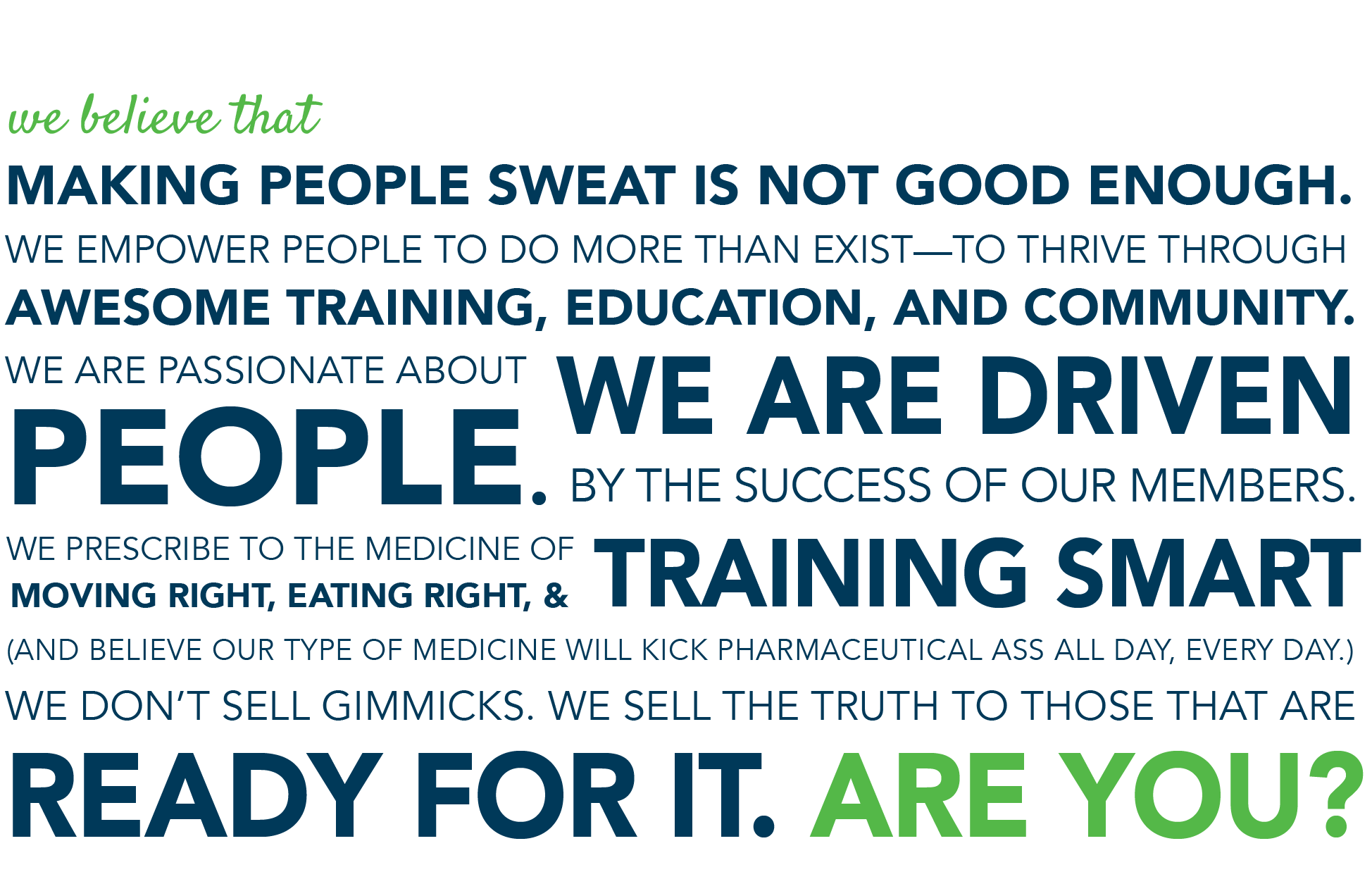 Balancing work and life’s energy demands can be complicated. We understand this and have developed a program that works to energize you rather than breaking you down. All our workouts work together to give you just the right amount of push and recovery throughout the week to keep you consistent - which is by far the most important factor in getting results!